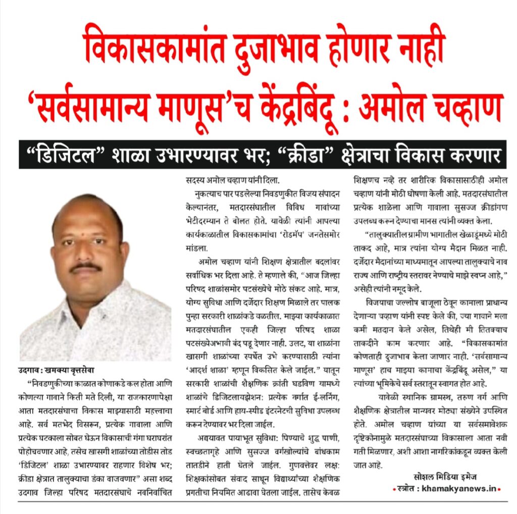 विजयाचा जल्लोष बाजूला ठेवून कामाला प्राधान्य देणाऱ्या चव्हाण यांनी स्पष्ट केले की, ज्या गावाने मला कमी मतदान केले असेल, तिथेही मी तितक्याच ताकदीने काम करणार आहे. “विकासकामांत कोणताही दुजाभाव केला जाणार नाही. ‘सर्वसामान्य माणूस’ हाच माझ्या कामाचा केंद्रबिंदू असेल,” या त्यांच्या भूमिकेचे सर्व स्तरातून स्वागत होत आहे.