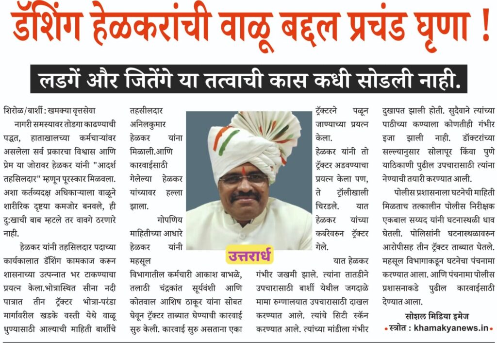 शिरोळचे तहसीलदार आणि कर्तव्यदक्ष अधिकारी म्हणून सुपरिचित असलेले अनिलकुमार हेळकर साहेब, आरोग्य विषयक समस्यांमुळे दीर्घकालीन रजेवर गेल्याचे समजते. त्यांच्या ठिकाणी इचलकरंजी विभागाचे अप्पर तहसीलदार महेश खिलारी यांच्याकडे अतिरिक्त कार्यभार सोपवला जाण्याची शक्यता आहे.