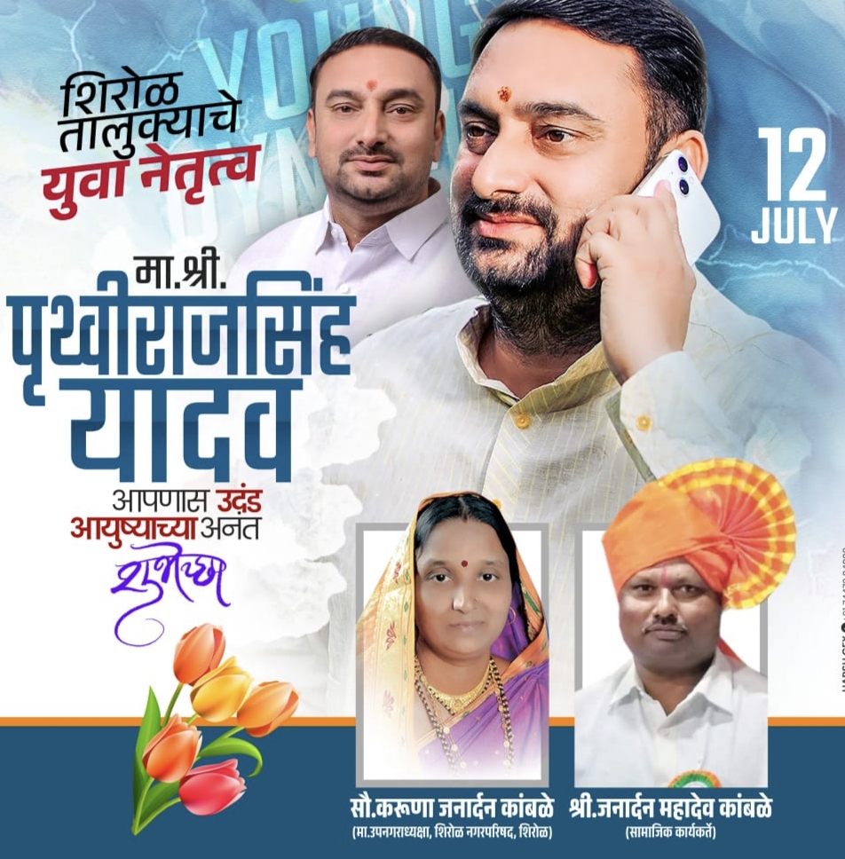 शहराबरोबर तालुक्याचे युवा नेते “पृथ्वीराजसिंह यादव” यांच्या आज शनिवारी होणाऱ्या वाढदिवसानिमित्ताने शिरोळ, जयसिंगपूर, कुरुंदवाड यासह तालुक्याच्या विविध भागांमध्ये “700” हून अधिक “फलक” उभा करून कार्यकर्ते चाहत्यांनी “शुभेच्छां”चा वर्षाव केल्याचे पाहायला मिळत आहे.