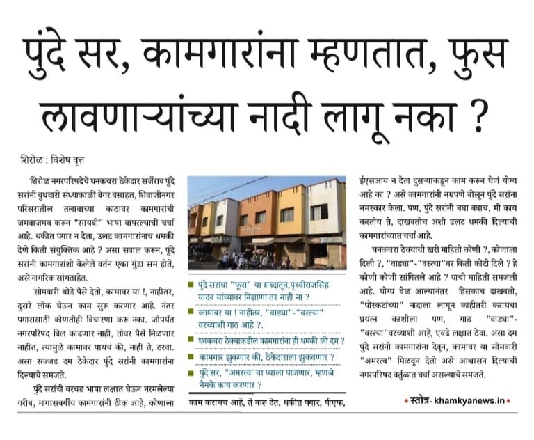 विकास कामांचे गाजर दाखवून शिरोळकरांच्या हक्काच्या पैशाची कशी लूट केली ? याची पुराव्यासह प्रकरणे बाहेर पडू लागली आहेत. नव्याने होत असलेला पाणीपुरवठा व नळ कनेक्शन, बेकायदा घनकचरा ठेका, घरफाळा-पाणीपट्टी कर, दिवाबत्ती, मनुष्यबळ पुरवणे ठेका, रस्ते-गटारी, वेगवेगळी सभागृहे, तालीम, कल्लेश्वर तलाव सुशोभीकरण, दत्त कारखाना बांधकाम परवाना व ठोक अंशदान, कामगार समावेशन.