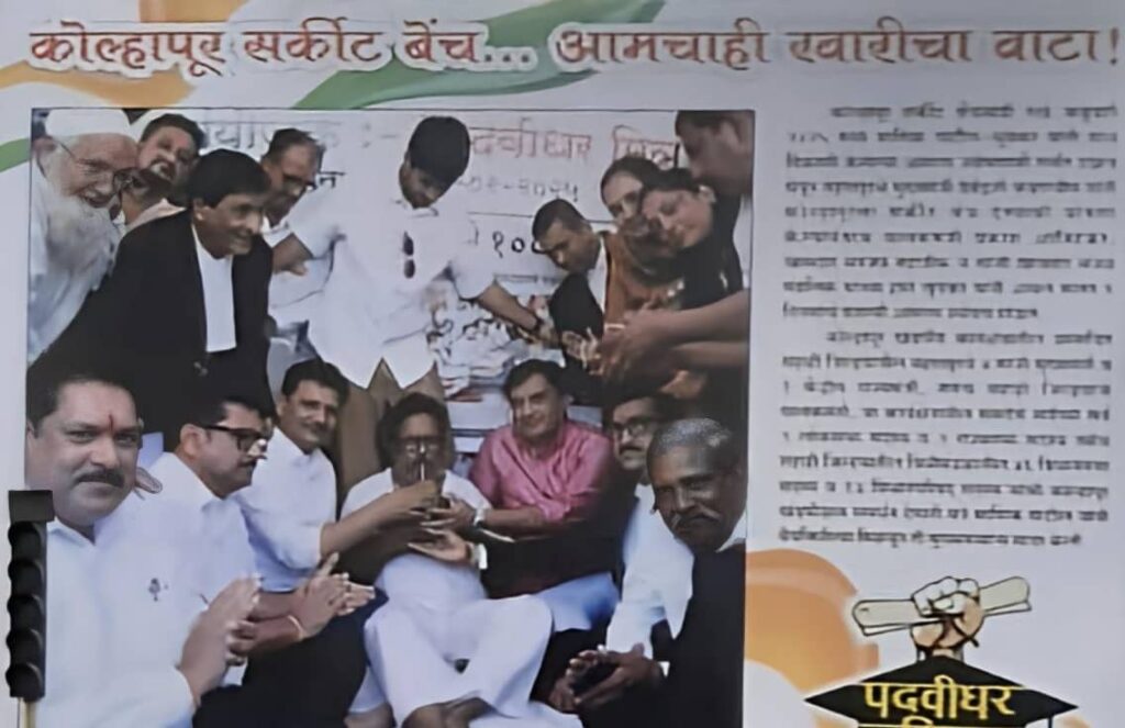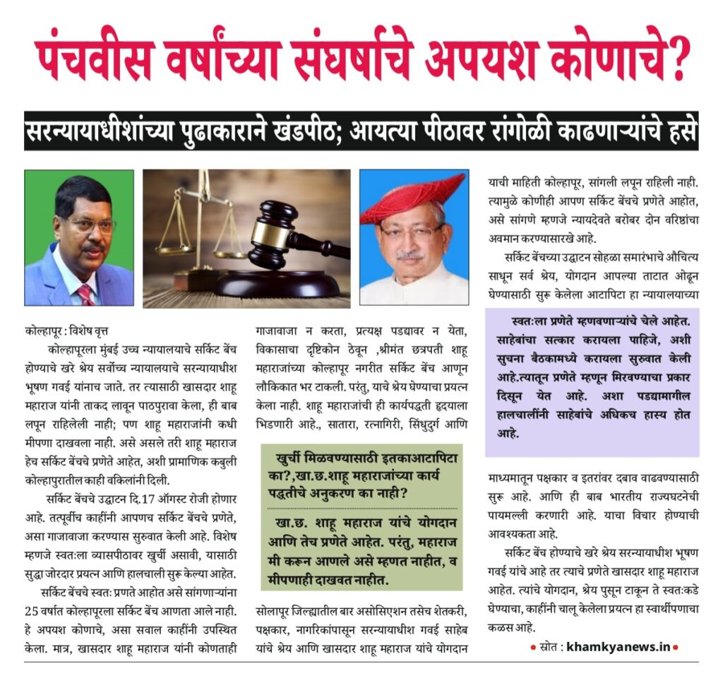 सरन्यायाधीश “भूषण गवई” साहेब यांनी कोल्हापूरला सर्किट बँकेची मंजुरी दिली. यासाठी “श्रीमंत छत्रपती शाहू महाराज” यांनी महत्त्वाची भूमिका बजावली. राज्य शासनाला जागे करण्यासाठी “माणिक पाटील-चुयेकर” यांनी आमरण उपोषण केले. निव्वळ एसी रूममध्ये बसून, फुकटचे सल्ले देऊन, फोनाफोनी करून कोणतेही मोठे काम फत्ते होत नाही.
