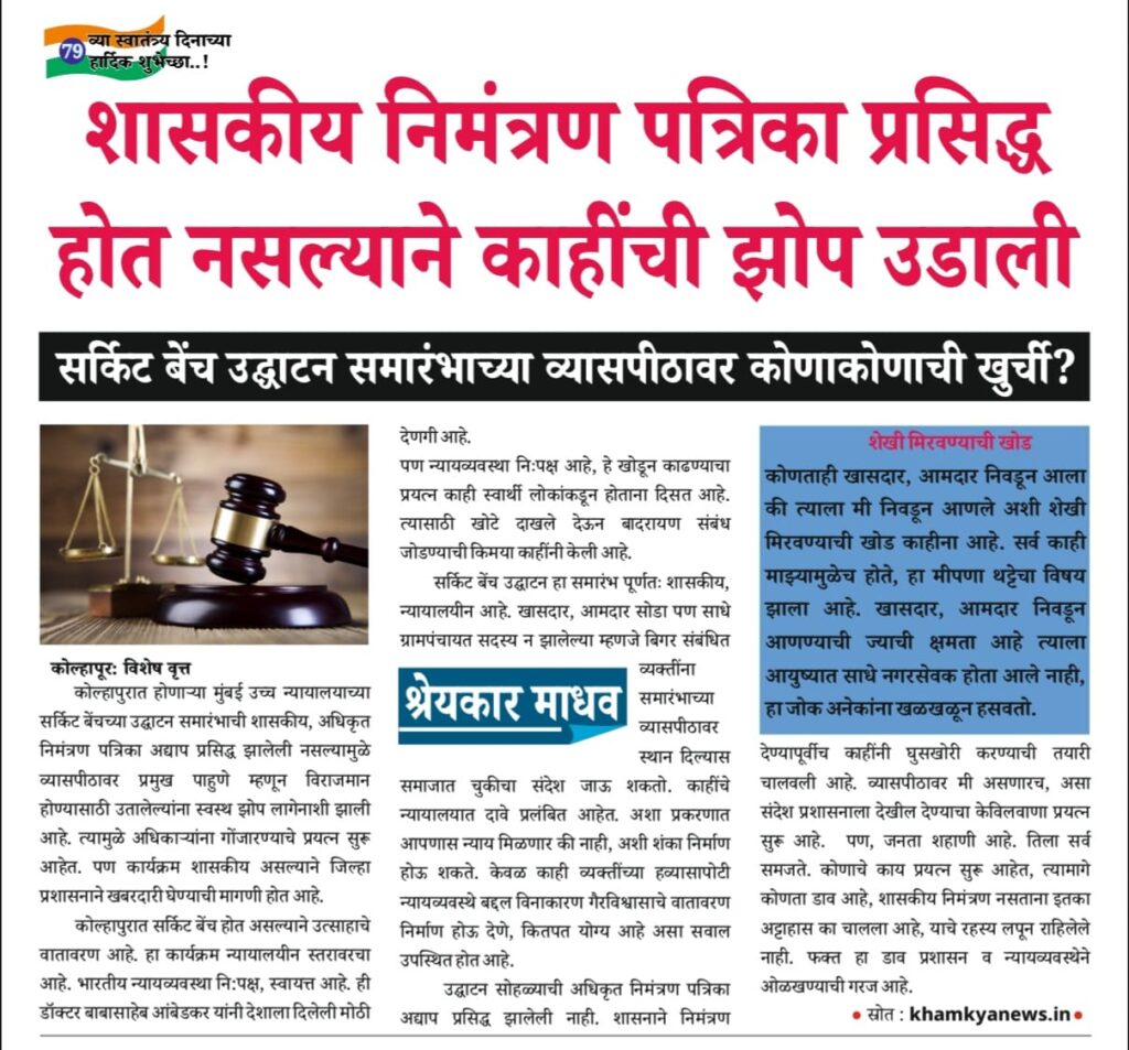 दि. 15 ऑगष्ट रोजी आत्मदहनाचे निवेदन दिले, पण, पोलिसांनी निवेदनाची दखल घेतली नसल्याचा आरोप मेथे यांनी केला. दरम्यान, मुख्य कार्यकारी अधिकारी अशोक पाटील याने दि.13 ऑगस्ट रोजी सचिन मेथे यांस अब्दुललाट औद्योगिक वसाहतीत गाठून शिवीगाळ करून जीवे मारण्याची धमकी दिली, याची तक्रार व्हॉट्सॲप वरून पोलिसांना देऊन गावातून बेपत्ता झाल्याचे मेथेंनी सांगितले.